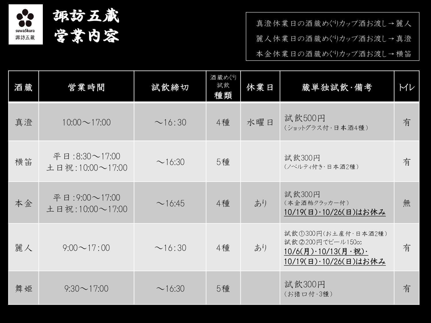 各蔵元、2025年10月の営業予定をご案内いたします。